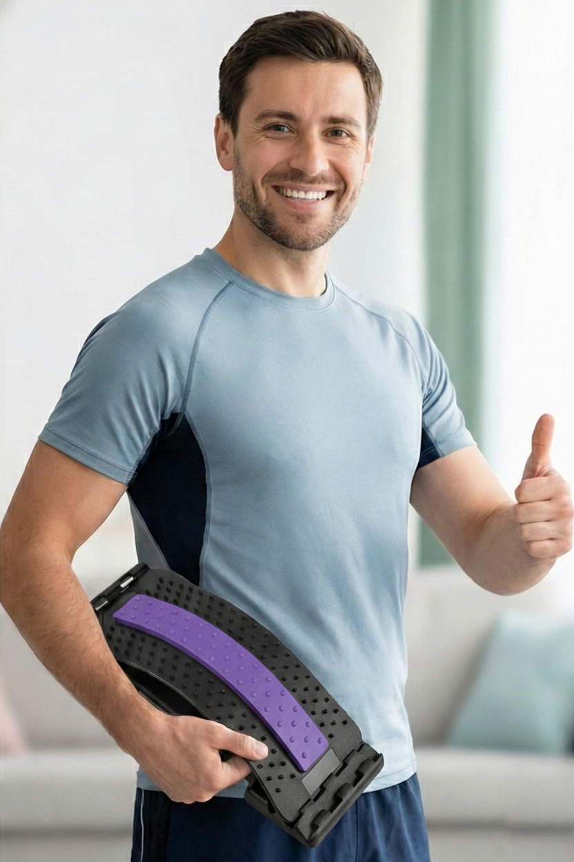 Our ergonomic back support provides natural spinal alignment, relieves lower back pressure, reduces muscle tension, and promotes better posture. Regular use can help alleviate chronic back pain, improve flexibility, and enhance overall spinal health. Many users report feeling relief within the first few sessions.