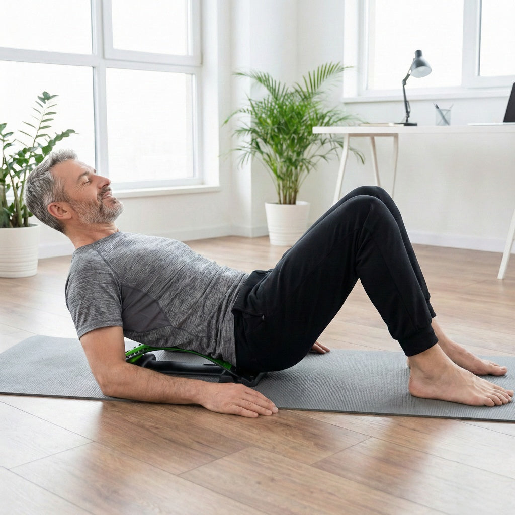 You might feel a sensation of "good stretch" or slight discomfort initially as your stiff muscles release tension—similar to a deep massage. We recommend starting on Level 1 (the lowest arch) and placing a towel over the device for extra cushioning until your back adapts.