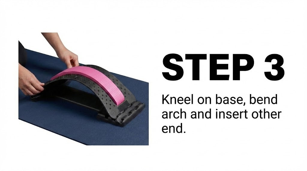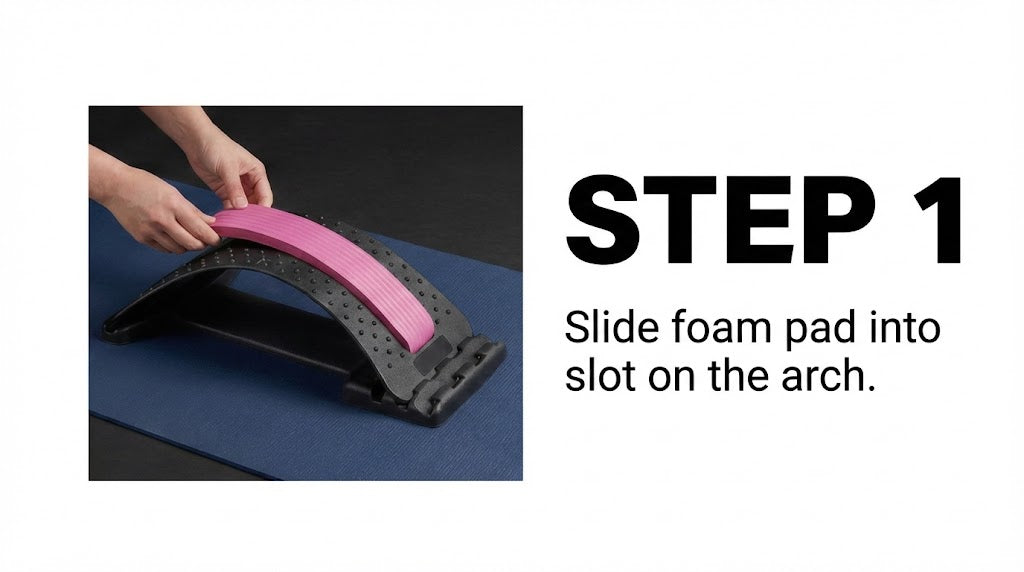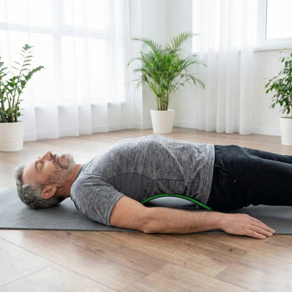 Position the back stretcher under your back and gently lie down. Let your body weight naturally settle onto the stretcher for optimal spinal alignment.